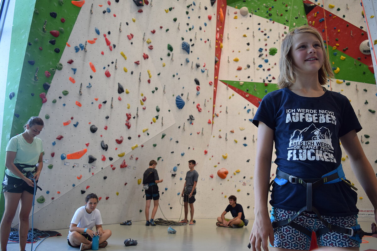 In der Kinderklettergruppe führen wir Kinder von 8-14 Jahren mit viel Spaß an das Sportklettern heran. Neben den grundlegenden Klettertechniken lernen die Kinder alle notwendigen Sicherungstechniken und sichern sich unter Aufsicht auch selbst gegenseitig im Toprope. Ab 12 Jahren erlernen die „erfahreneren“ Kinder das Klettern im Vorstieg.